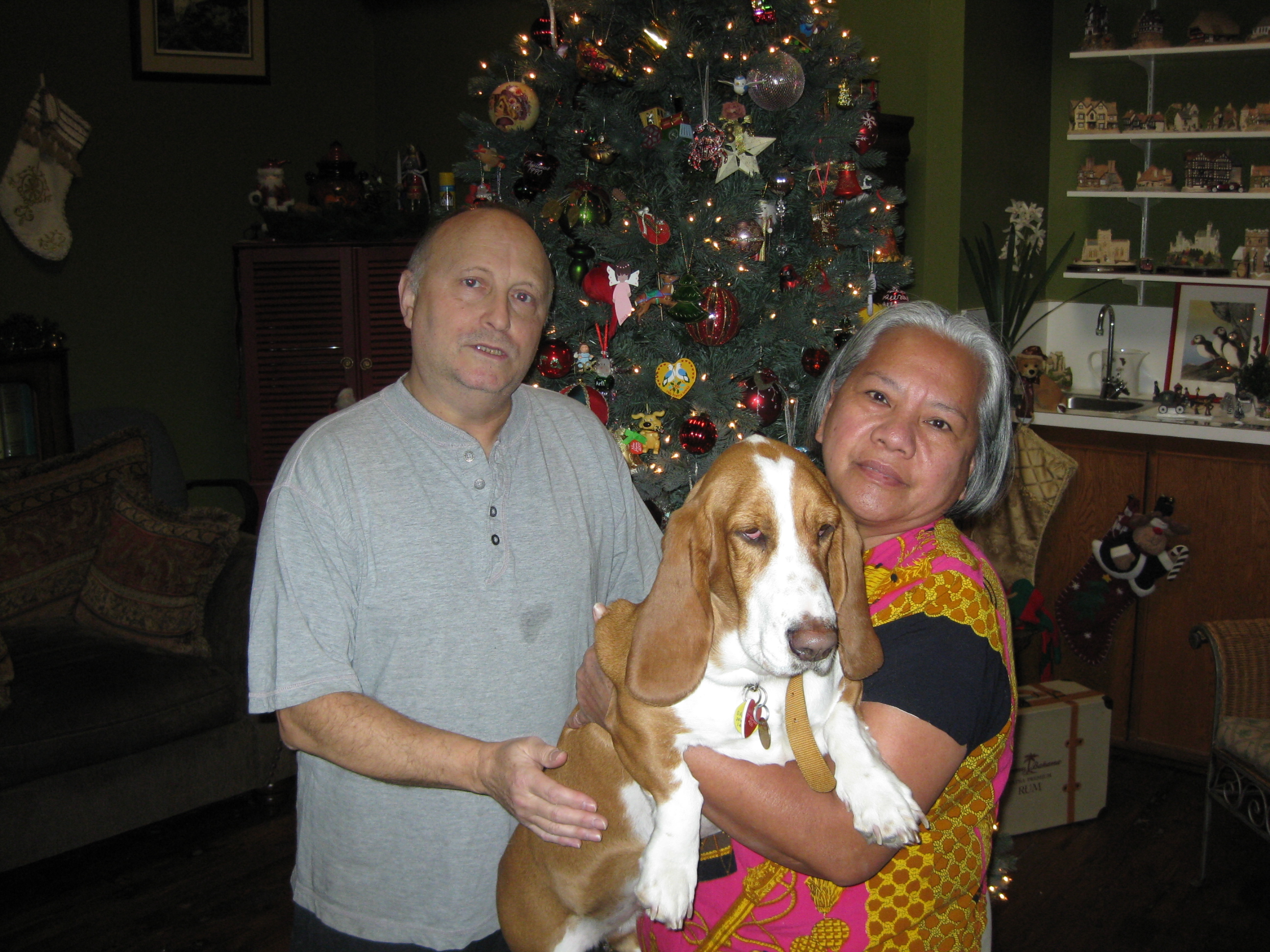 DILAN Ed and I want to thank you for letting us adopt Dusty [aka Dilan]. Not a day goes by that we do not appreciate all the wonderful work you do for Basset Hounds. We got Dusty in April and we have laughed every day. No matter what he does wrong, he just looks at us and we smile. That dog has the cutest face. The expressions are priceless. I am attaching pictures of Dusty and Pandy that we enclosed with our Christmas cards. My favorite one is the one looking out of the car because it shows what an imp he is. Pandy was a rescue dog also; but we got her from a private person who did not know what to do with an active Basset. We were at the Basset Shuffle and had a great time. It was so wonderful to see so many different dogs and how well behaved they were. The work that goes into the Shuffle must be tremendous as it was shown in how well run the events were. I even won two raffle prizes. We will be back next year. Sorry we did not get to see either of you there, but we met a lot of great Basset people. Thank you for all the great work you do. We are firm believers of all Rescue Operations and will continue to enlighten others about the good cause that you support. Ed and Jane Driscoll GINGER